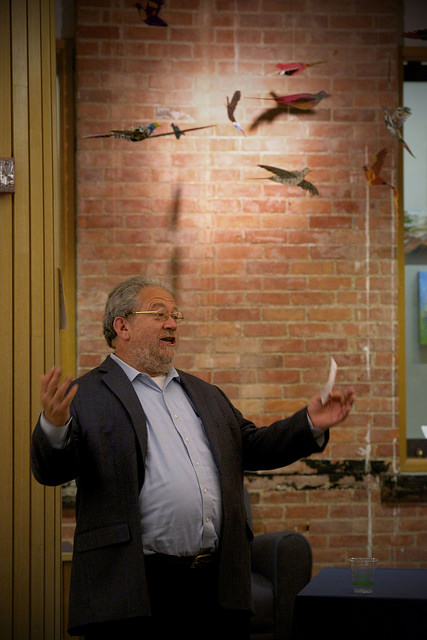 We had a wonderful reception for the exhibition at which author Joel Greenberg (left) discussed the role of art and artists in his national effort Project Passenger Pigeon. Sara and her student team produced a beautiful and informative poster of the exhibition.