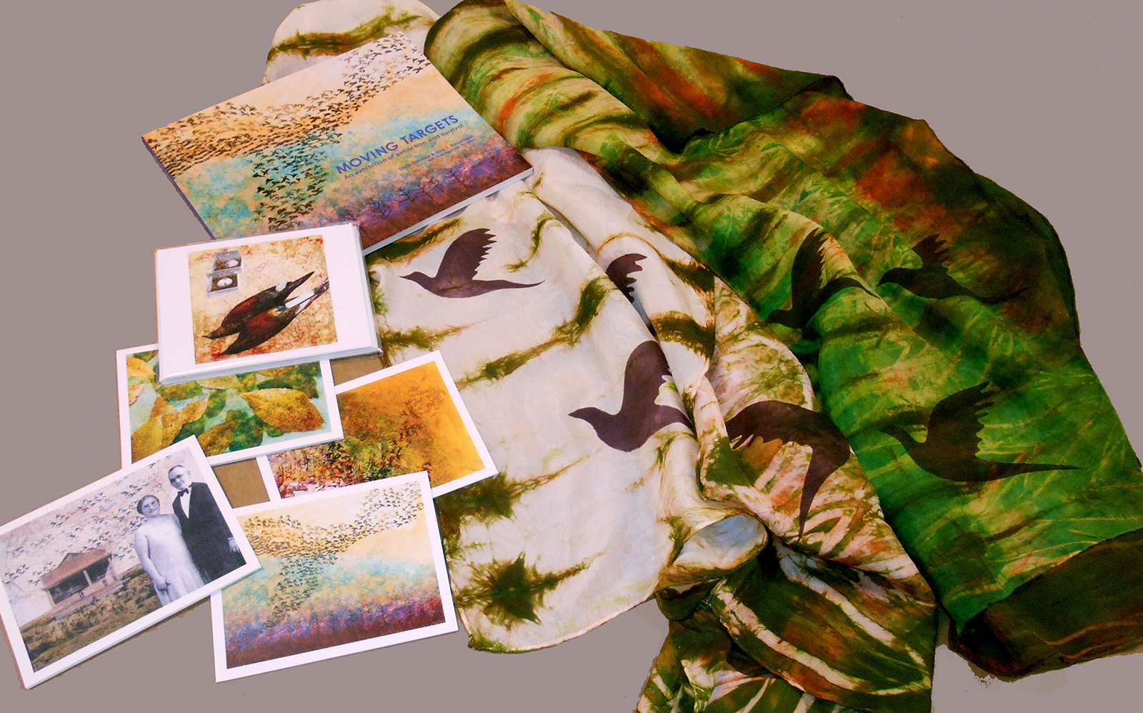 Following the closing of the exhibition, we are getting out the “perks” (above) we promised our many wonderful contributors, including a set of six note cards, each with a unique reproduction of an artwork ($25 level); hand-dyed and printed silk scarves ($50 level), and catalogs ($100 level). We are continuing to accept contributions directly to cover our costs for the project (post a comment below if you would like to contribute and we will contact you). Contributors will receive the perks listed here. You can also buy the catalog directly here. Note that the cost of the catalog covers the production; we are not making any extra on these sales!