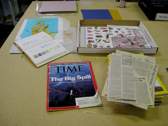 I came around to a pile of clippings I had saved from the BP ‘Spill,’ which was paradigm shifting for me. I have always believed that social and environmental change was a slow process, and if I could reach even a few people with my artwork, writing or teaching, that would add up to something. The Spill made me seriously question my assumption. If one company, through negligence and greed, can destabilize a vast ecosystem and a region’s livelihood, how can I think that getting a student or two to recycle is effecting any kind of change? The gulf between an individual and a wreckless multinational corporation is unfathomable. I doubt that I will ever be able to hold on to such naive hope again.